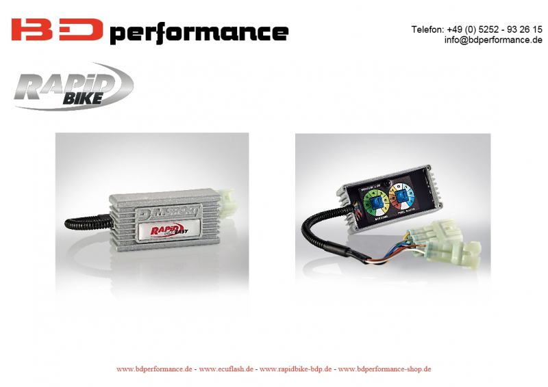 Das Rapid Bike Modul wird mit einem passenden Kabelkit (passend für das original System) angeschlossen und ermöglicht über eine einfache Drehpoti-Trimmerregelung den Lambdaregelbereich individuell auf die eigenen Fahrbedürfnisse einzustellen.